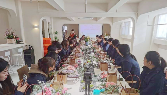 活動中,大家還一起學習了插花技藝。一朵朵鮮花在一雙雙巧手的設計下,變成一件件精美的花藝作品。