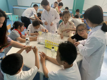 帶著疑問,工作人員帶領小朋友們一起開展了“水垢清除”“酸堿變色”“硬幣滴水”等趣味十足的小實驗,讓小朋友們沉浸式體驗了解水知識、水文化。