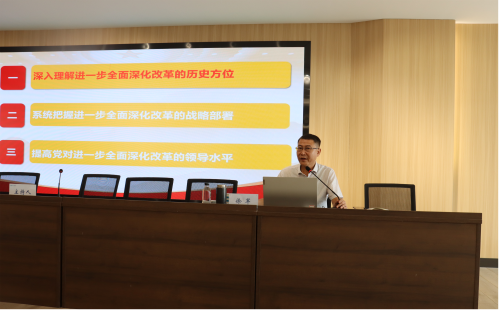 8月30日上午,溧水環境集團舉行學習貫徹黨的二十屆三中全會精神專題宣講報告會,邀請區委宣講團成員、南京航空航天大學馬克思主義學院副院長、教授、博士生導師徐軍作專題宣講。集團領導班子、全體黨員、本部全體人員、子公司中層正職以上人員參加。集團黨委副書記、總經理金玉峰主持報告會。