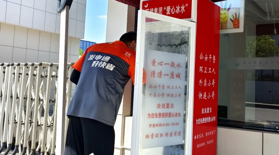 在城區自來水公司管線運維中心門口的“愛心冰柜”投放點,剛剛到送完快遞的申通快遞小哥趕來取水。他豎起大拇指說:“這一帶是我的配送范圍,一天得來三四趟,口渴的時候直接過來,真是太貼心了!”